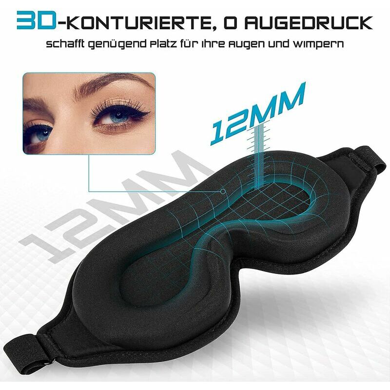 Blocca completamente la luce: il nuovo design del ponte nasale 3D della maschera per dormire è adatto a diverse altezze del naso, i morbidi cuscinetti a V riempiono lo spazio tra il ponte del naso, che può bloccare efficacemente la luce per entrare e portarti in un sonno rapidamente buio ambiente e ti permettono di avere un sonno confortevole. Morbida e traspirante: la maschera per dormire è realizzata in memory foam ad alta densità a rimbalzo lento, più morbida di altre maschere. La fodera è composta da un tessuto di seta ghiacciata fresco e traspirante, molto delicato sulla pelle e confortevole. La stessa piacevole sensazione della pelle che dorme tutta la notte, senza traspirazione. 0 Pressione oculare: rispetto alle tradizionali maschere per dormire, questa maschera per dormire ha un contorno ultra profondo di 12 mm, il design 3D non causa pressione oculare, non c'è bisogno di preoccuparsi dello sfregamento delle palpebre o del trucco degli occhi, l'esclusiva scanalatura anteriore