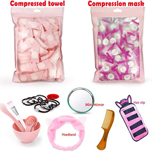 Maschera facciale compressa, kit di bellezza naturale fai da te, 100 pezzi per la cura della pelle, 100 pezzi di asciugamani compressi e fermaglio per capelli, fascia per capelli