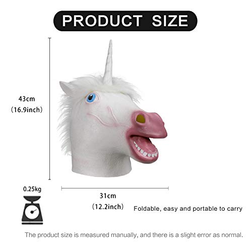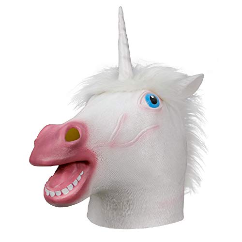 Maschera a forma di unicorno, in lattice, con testa intera e divertente, per Halloween, accessorio per cosplay e feste
