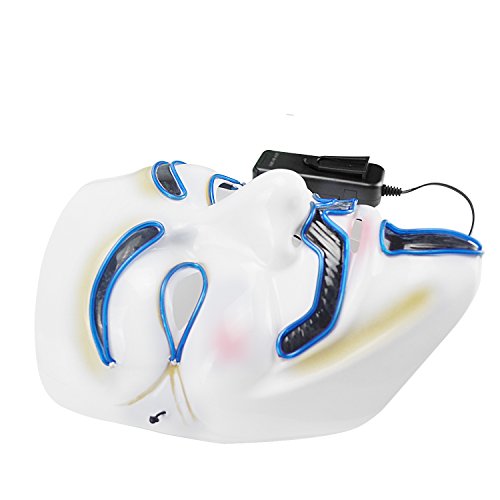Illuminare il partito: 3 modi ti fanno raffreddare e brillare. Premere il pulsante per la prima volta e la luce sarà accesa costantemente. La seconda volta lampeggerà la luce. La terza volta per controllare la modalità vocale. Quando si accende la modalità vocale, la maschera si accenderà ed è una luce costante senza voce. Se il suono è reso forte, la maschera si accenderà con il suono e lampeggia una volta rapidamente. Ma la maschera seguirà il ritmo sonoro che lampeggia costantemente.