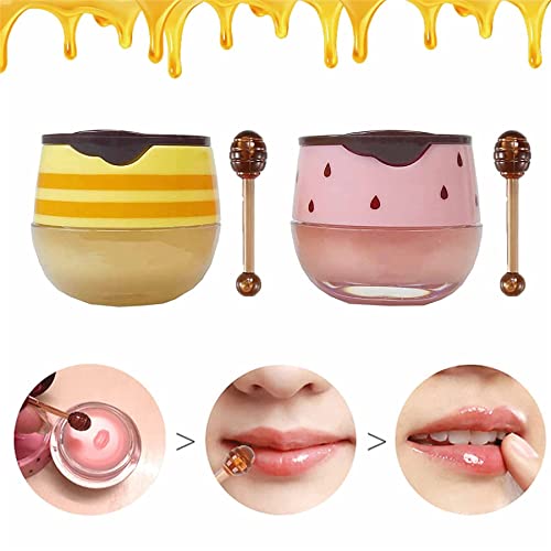 Maschera Labbra al Miele con applicatore, balsamo per Le Labbra balsamo d'Ape vasetto di Miele, balsamo per Le Labbra alla Fragola, balsamo per Le Labbra nutriente per Le Labbra (B)