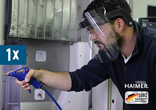 Il modello 2 offre protezione contro le particelle grazie alla visiera frontale rinforzata, il modello 2 può sostituire gli occhiali protettivi immediatamente disponibile. Le maschere di protezione con visiera pieghevole sono prodotte e spedite in Germania, subito pronte all'uso. Tutte le parti vengono consegnate premontate, non richiedono assemblaggio, protezione e comfort - Protezione per il viso con visiera mobile come protezione da contatto e spruzzi di liquidi che ad esempio durante la parola, tossina, I rivestimenti possono nascere, comodi e igienici - con imbottitura per la testa e visiera removibili (come visiera e imbottitura di ricambio su Amazon Prime), sostenibile ed ecologica - grazie all'imbottitura e alla visiera facilmente sostituibili - Dimensione regolabile - diametro e altezza, per diametro testa 56 - 65 cm, buona tenuta senza pressione o scivolamento grazie alla doppia possibilità di regolazione sulla testa, per un campo visivo a 360°. L'ombrellone ha le dimensioni di 24 x 26 cm (lenti in PET/PC), adatto per chi porta gli occhiali. Occhiali di protezione e maschere per naso sono facilmente combinabili, qualità prodotta in Germania da Haimer GmbH.