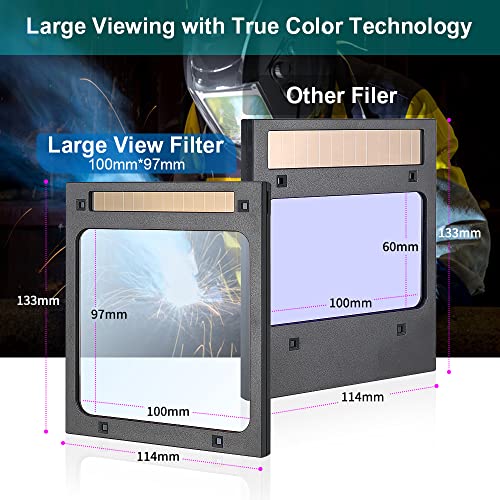 【Auto-oscuramento】Gamma di tonalità completa 5-9/9-13, Di fronte all'arco voltafico durante la saldatura, diversa dal casco tradizionale, questo casco inizia a lavorare automaticamente, diventa chiaro a scuro, protegge gli occhi dell'utilizzatore dal danno leggero.