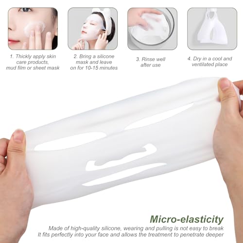 Maschera Viso in Silicone, HERKINDNESS 4 Pezzi Maschera Viso Idratante, Maschera Facciale Riutilizzabile per Rallenta L'evaporazione Degli Ingredienti Nella Maschera