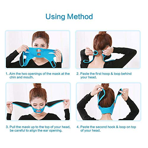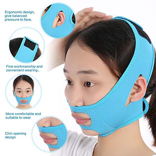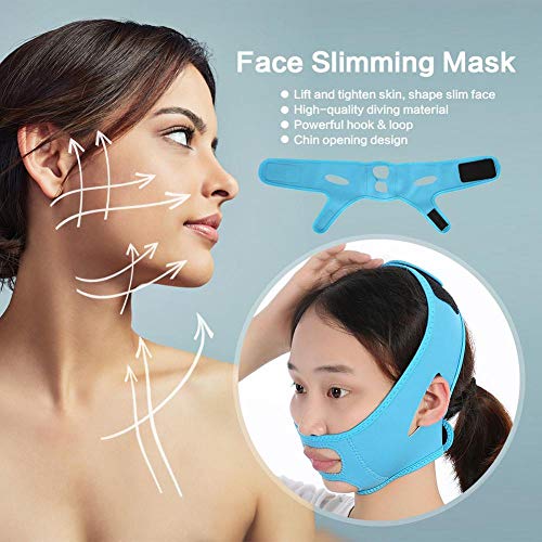 Maschera viso snellente,Riduttore per doppio mento per le donne,La guancia del mento con linea a V solleva la fascia Bendaggio antirughe Elimina il rilassamento cutaneo Sollevamento Rassodante(Blu)