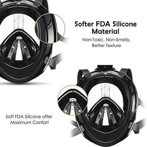 Respirare è più facile grazie al boccaglio con maggiore capacità. La maschera avvolgente da snorkeling di YTYI è dotata di una camera di respirazione separata proprio sopra naso e bocca, permettendoti di respirare più facilmente rispetto a un normale boccaglio, e impedisce che le lenti si appannino.