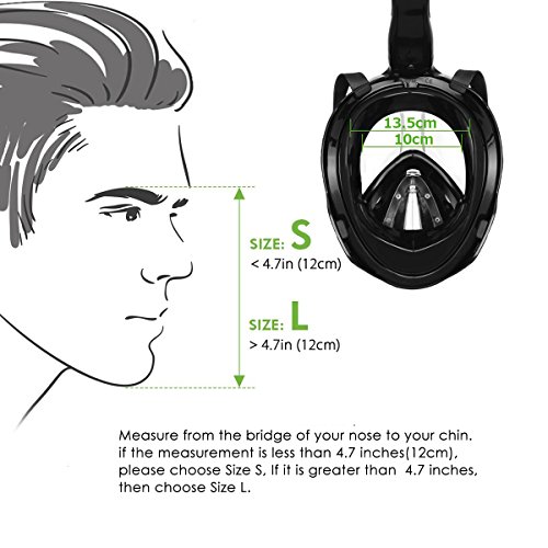 Due taglie tra cui scegliere, S/M e L/XL. (Manuale incluso) Si prega di scegliere la taglia adatta. Misurate la distanza tra naso e mento, tenendo la bocca chiusa: se misura meno di 12 cm, scegliete S/M, se misura più di 12 cm, scegliete L/XL.