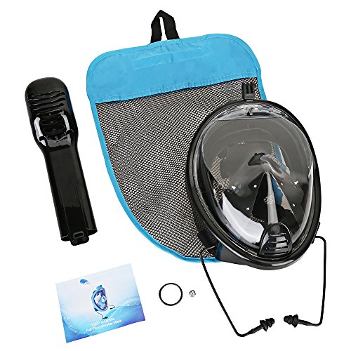 Maschera da snorkelling e da immersione con visuale a 180°, copre l'intero viso, design anti-appannamento e anti-infiltrazione, adatta a bambini e adulti, include custodia impermeabile per telefono