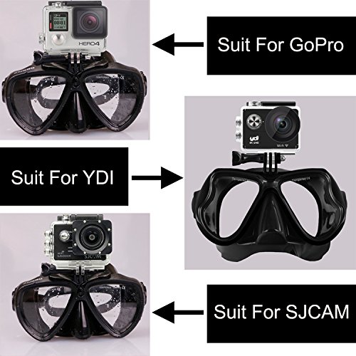 YDI Maschera Subacquea Compatibile con Action Sports Camera, Gopro Hero 5/4/3/2/1, Xiaoyi Serie, SJCAM Serie, Nuoto Maschera per Snorkeling (Nero)