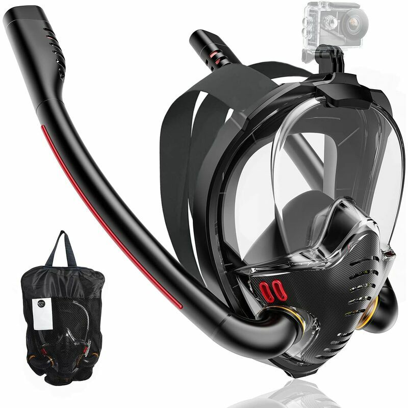 Descrizione L'originale sistema di respirazione a circolazione singola (esterno) offre canali d'aria completamente indipendenti. L'aria entra attraverso il doppio tubo e la valvola di scarico centrale scarica il 100% dell'anidride carbonica per evitare ripetute inalazioni di anidride carbonica. Far circolare aria fresca attraverso la bocca e il naso insieme ti rende più rilassato durante lo snorkeling. Innovativo metodo di espirazione unidirezionale, previene l'accumulo di CO₂. Non sentirti stordito o addirittura soffocato da allora non inalare miscele CO₂-aria. Design a doppio tubo, consente una minore resistenza e una respirazione naturale attraverso la bocca e il naso. Camera di respirazione separata, il design della ventilazione è due volte migliore rispetto ad altri sistemi completi maschere facciali per lo snorkeling per massimizzare il flusso d'aria fresca e ridurre l'appannamento. Tutto ciò che facciamo, è solo per offrire un'esperienza di snorkeling sicura e confortevole.