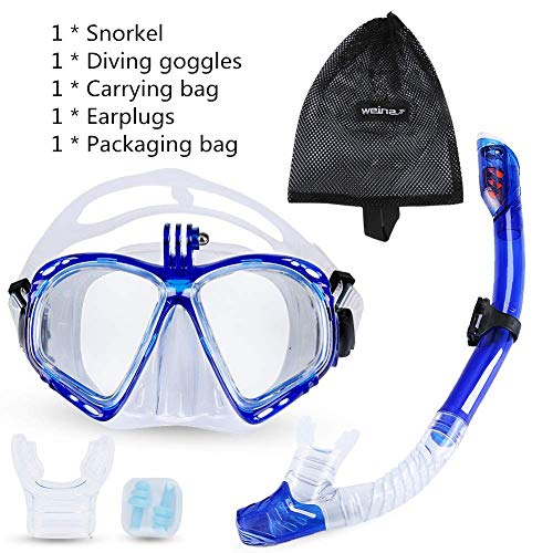 Maschera Subacquea da Snorkeling con Boccaglio, Unisex, Professionale, Compatibile Foto Camera per GoPro Hero, Adulti, con Lenti in Vetro Temperato, Colore Blu--meilianeu