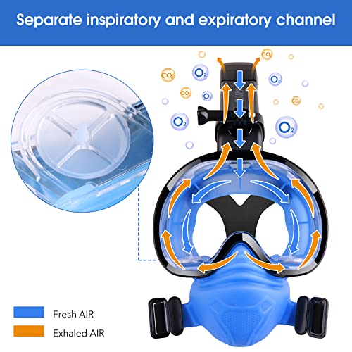Sicurezza Della CO2 & Camera di Respirazione Ergonomica ➤ Rispetto ad altre maschere complete del viso, l'aria espirata viene canalizzata sul lato al livello dell'orecchio. Ciò impedisce la respirazione pericolosa del pendolo. L'aria usata non deve scorrere fino alla cima dello snorkeling per essere espirato lì. La nostra maschera di snorkeling è testata da SGS. Con la parte del mento in silicone pieghevole, puoi usarlo più confortevole e gratuito.