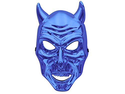 Maschera Teschio Diavolo Corna Scheletro plastica per Halloween Carnevale Paintball Orrore terrificante Skull Adulti Adolescenti scheletrica Cranio Devil Denti, Seleziona:MAS-37 Blu