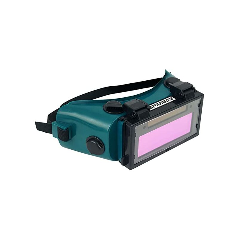 Filtro auto-oscurante che cambia da chiaro a scuro non appena viene colpito l'arco Protegge dai raggi UV/IR Sensibilità regolabile Archetto facilmente regolabile.