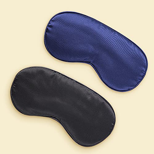 Maschere per dormire in 2 pezzi, comoda maschera per gli occhi in seta con cinturino elastico regolabile, viaggio, copertura per gli occhi in raso per donne e uomini (nero+blu marino)
