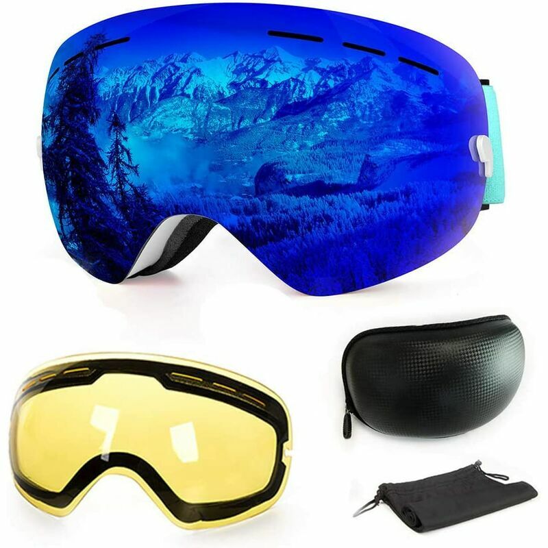 Sistema di lenti rimovibili: il sistema di lenti rimovibili offre lenti sostitutive di diversi colori. La lente sferica fornisce una visione chiara e senza ostacoli dei binari. Le lenti a doppio rivestimento offrono un'eccellente protezione per i tuoi occhi. Sono adatti a diverse condizioni meteorologiche e alle tue preferenze personali per lo sci, lo snowboard o altri sport invernali. Lenti di ventilazione a doppio strato e design senza cornice: progettate per ridurre l'appannamento e ottimizzare il flusso d'aria all'interno dell'obiettivo. Gli occhiali da sci offrono un sistema di ventilazione delicato che fornisce aria fresca e umidità che fuoriesce dall'adulto in modo rapido ed efficiente. All'interno, la morbida spugna offre una buona protezione e una migliore aderenza al viso. una visione chiara Cinghie regolabili e compatibili con il casco: la cinghia elastica antiscivolo è progettata per un facile distacco e una rapida regolazione della lunghezza ed è compatibile con la