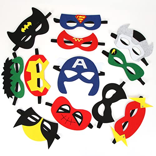 Maschere Supereroi Bambini, 12 Pezzi Supereroe Masks, Mascherine Feltro Supereroi con Corda Elastica per Cosplay, Carnevale, Feste di Compleanno Bambino
