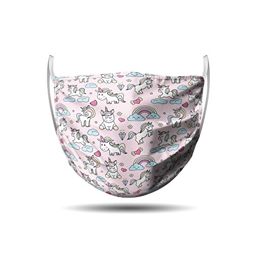 Mascherina bambini in cotone lavabile - riutilizzabile - comoda con elastici vari colori e fantasie (unicorni e nuvole)