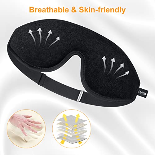 Mascherina per Dormire, Gritin 2022 Mascherina per Occhi 3D-Contorno Innovativa per Donna e Uomo, 100% Bloccare la Luci, Super Morbida e Confortevole Maschera Notte con Tappi per Orecchie