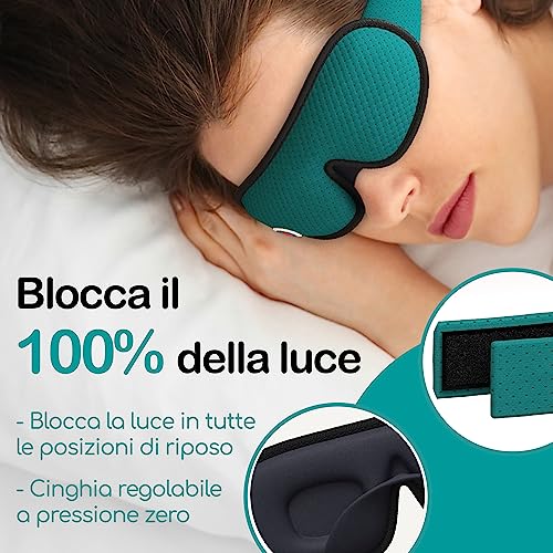Mascherina per Dormire Memory Foam 3D [9pc] Maschera Occhi Effetto Total Darkness, Mascherina Occhi per Dormire Traspirante - Inclusi 4x Tappi Orecchie, Porta Mascherina, Moschettone, Velcro
