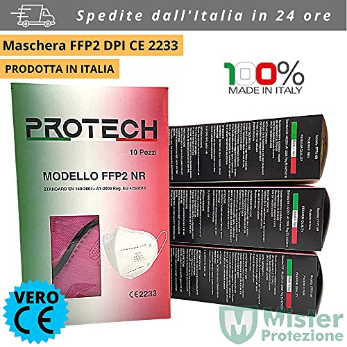FFP2 Mascherina Protech colorata 10 pz. Made in Italy in TNT filtrante a 5 strati (rosa)