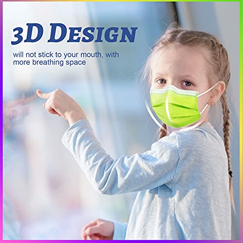 Mascherine Bambini, 50 Pezzi Mascherina Bambini Colorate Monouso Certificate CE 3 Strati Traspiranti BFE≥98% - Rosa Nero Giallo Viola Verde