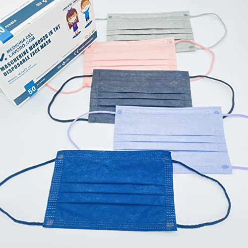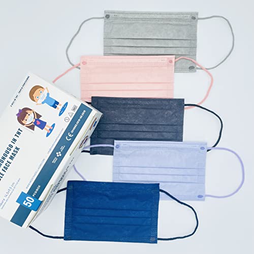 50 Mascherine Chirurgiche Bambini Colorate Bambina, Certificate CE, Conformi EN14683:2019, Alta Efficienza di Filtraggio BFE≥95, Mascherina Chirurgica Certificata, Face Mask Monouso 3 Strati| 50 Pezzi
