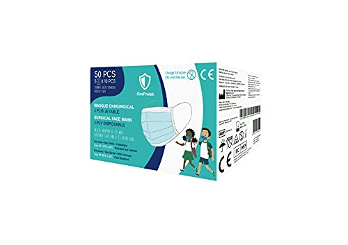 50 Mascherine chirurgiche bambini OneProtek - Dispositivo medico di Tipo 2R IIR - Certificate CE - Confortevoli e elastic resistenti