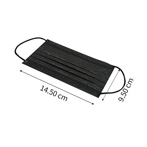 Composizione: 3 strati in TNT di cui 2 in polipropilene SPUNBOND (strato esterno ed interno) e 1 filtrante in fibre di polipropilene MELTBLOWN (intermedio).Le dimensioni:14,5 cm x 9,5 cm (nero)