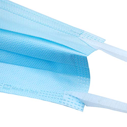 Mascherine Chirurgiche XL Uomo Grandi, Certificate CE Tipo 2R, Italiane, Elastico Morbido, Colorate Azzurre, Monouso, Confezione da 50 pezzi
