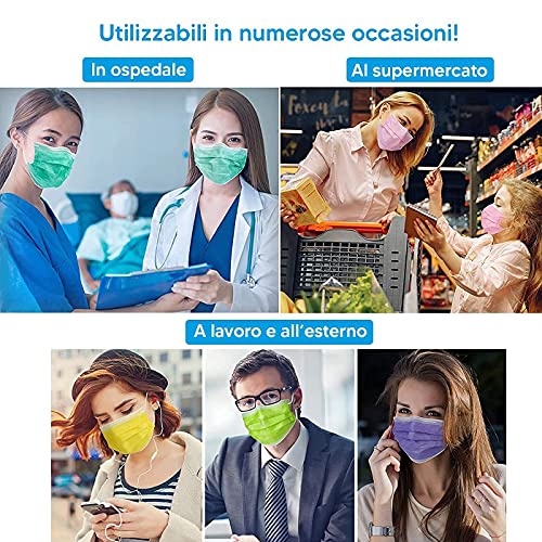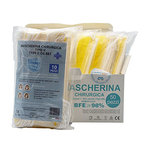50pz Mascherine Chirurgiche italiane di colore Giallo Monouso - Made in Italy - Tipo IIR BFE 98% Certificate - Morbide e traspiranti