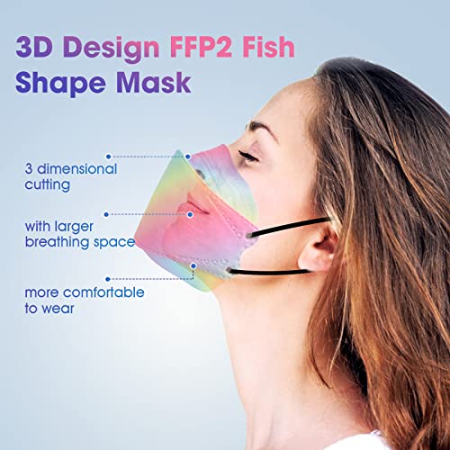 Mascherine FFP2 Colorate Certificate Ce, Mascherina Facciale FFP2 a Forma di Pesce Arcobaleno 4 strati Design 3D Traspirante Confezione Igienica Sigillata - Verde Rosa Viola Blu Giallo Arancione