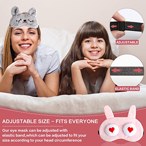 【4 stili】 Ci sono 4 stili in questo set di maschera per gli occhi per dormire, ovvero occhio d'amore rosa, parola nera, coniglio di peluche grigio e gatto bianco della corona. Ogni mascherina regolabile è confezionata singolarmente e il set viene fornito con una custodia in flanella per una facile conservazione in viaggio.