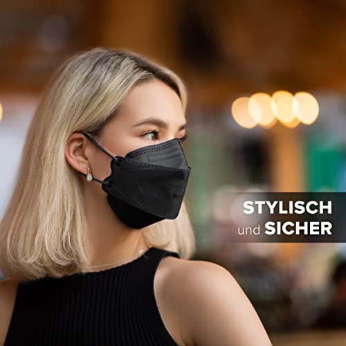 HARD Mascherine FFP2-5 pezzi| Prodotto in Germania | Respiratore confortevole | Delicato sulla pelle e traspirante - OEKO-TEX | confezionati singolarmente - Nero