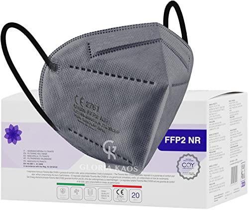 20 Mascherine Protettive FFP2 MADE IN ITALY Certificate CE 2761 Sigillate Singolarmente Categoria DPI: III, conformi EN 149:2001 + A1:2009 (M, Grigio, 20)