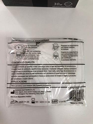 FFP2 NR box 30 Mascherine SAMDING + OMAGGIO. Mascherine FFP2 NR certificate CE, DPI maschera di protezione antipolvere 5 strati imbustate singolarmente 30 pezzi + OMAGGIO 1 flacone Primagel 80ml.