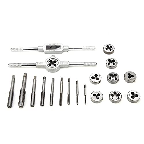 Set di maschi e filiere 20 pezzi Kit di maschi e filiere in lega di acciaio per utensili con custodia M3-M12 per tagliare filettatura esterna e interna