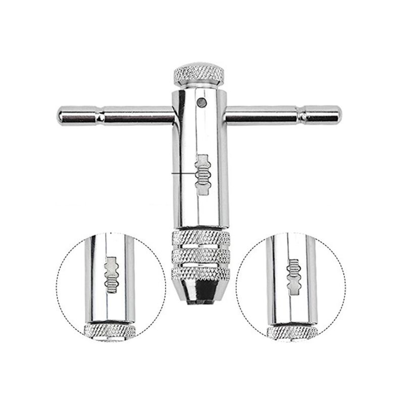 Maschiatore a cricchetto tipo T M3-M8 + maschio per filettatura a scanalatura diritta 【Materiale di alta qualità】La chiave per giramaschi è realizzata in acciaio al carburo di cromo, che è durevole e ha le caratteristiche di elevata durezza, no deformazione, ruggine e resistenza alla corrosione. sentiti bene con te stesso 【Varie dimensioni】 Ci sono diverse dimensioni tra cui scegliere, quindi puoi scegliere liberamente la dimensione che desideri. 【Asta ausiliaria rimovibile】 La maniglia del rubinetto la chiave inglese scorre sull'altro lato per un facile posizionamento e un accesso senza ostacoli anche in spazi ristretti 【Design a forma di T】 Il giramaschi può essere azionato con una sola mano e il design a forma di T è facile da impugnare e utilizzare . La superficie del manico ha un motivo antiscivolo per una facile presa e pressione. 【Ottimo strumento】 Questo set di rubinetti è adatto per la lavorazione di legno, plastica e acciaio comune. Inoltre, il cricchetto per maschi è