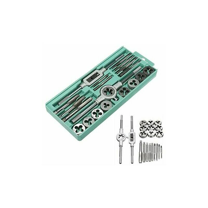Questo set di maschi e filiere metriche contiene la maggior parte degli strumenti di cui potresti aver bisogno per la riparazione delle filettature. I maschi hanno buone caratteristiche di resistenza, rimozione rapida dei trucioli e non si rompono facilmente. 2 supporti regolabili con forte presa forza e design antiscivolo per una regolazione precisa Maschi e filiere in diverse dimensioni: M3 x 0,5, M4 x 0,7, M5x0,8, M6x1,0, M7x1,0, M8x1,25, M9x1,25, M10x1,5, M12x1,75. Include 9 maschi, 9 fustelle, portamaschi e portamatrice