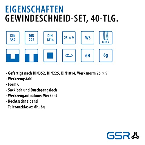 GSR Set di maschiatura a mano da 40 Pezzi | Giramaschi regolabile | Kit di filiere e maschi a taglio M3-M12 | Filettatura interna ed esterna | Filiera professionale | Set per filettatura
