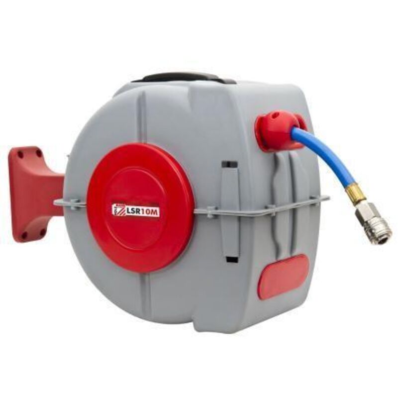 Dettagli tecnici Caratteristiche tubo aria compressa Montaggio a parete Contenuto 1 pz. Diam int 9.5 mm Dimensione del prodotto, lunghezza 10 m Ingresso aria 1/4 (6,3 mm) Peso 5 kg Tipo prodotto Tubo flessibile Materiale tubo flessibile: PVC Diametro interno del tubo flessibile: 9,5 mm (3/8) Tipo di attacco: 2 x 1/4 Avvolgitore ad aria compressa per tubi flessibili LSR 10 M Grazie al supporto a parete in dotazione, l'avvolgitore ad aria compressa per tubi flessibili può essere riposto senza occupare troppo spazio. La meccanica di guida garantisce un avvolgimento ottimale del tubo flessibile. Punti di forza e dettagli Supporto a parete Meccanica guida Tubo flessibile da 10 m Caratteristiche Tamburo per il trasporto del supporto a parete, rimovibile senza attrezzi Maniglia collocata sul lato superiore Meccanismo di avvolgimento automatico Meccanica guida Tubo flessibile da 10m Alloggiamento in plastica robusto e resistente agli agenti atmosferici. Incluso nella consegna Supporto a
