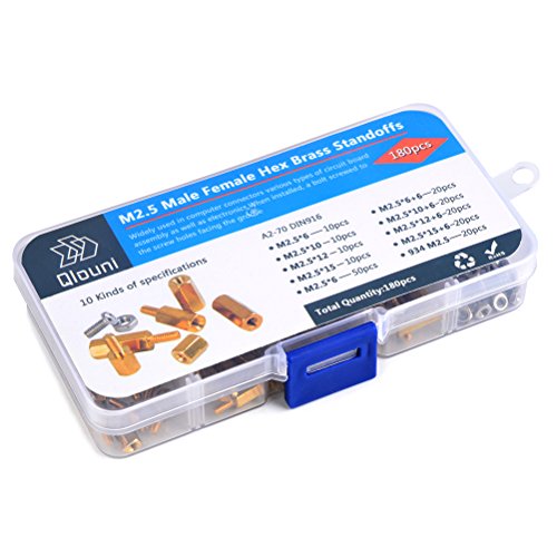 NA 180 pz M2,5 Maschio Femmina Esagonale in Ottone Distanziale Vite Dado Kit Assortimento Distanziali in Ottone M2,5 Colonna Esagonale in Ottone con Scatola di Immagazzinaggio