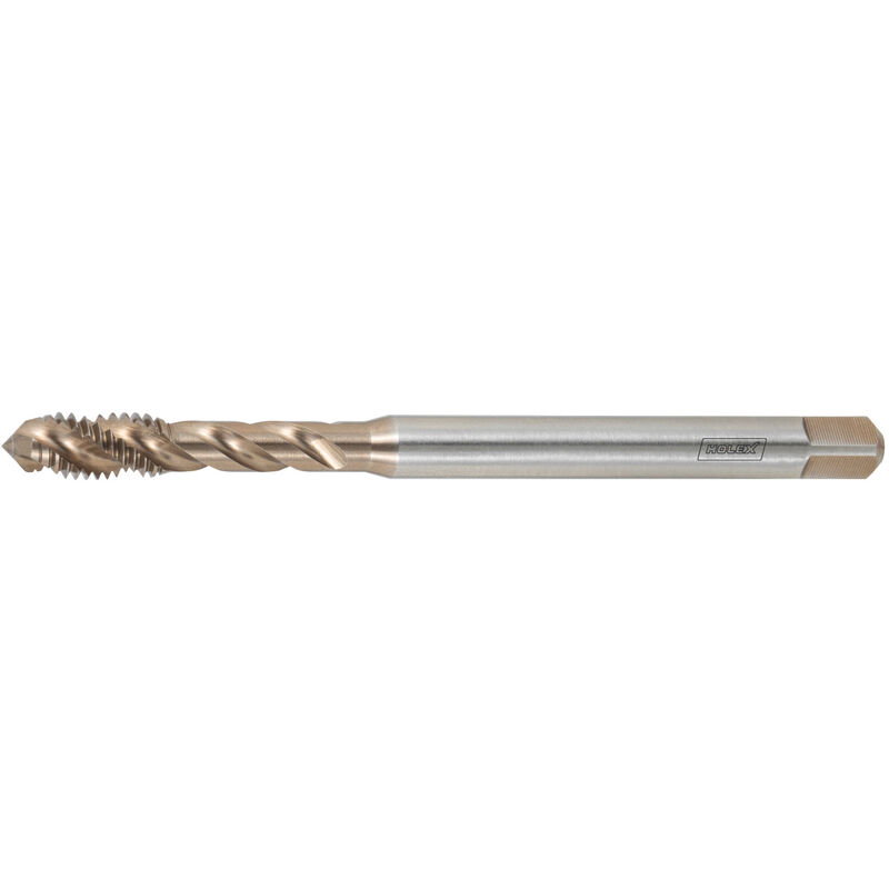 HOLEX Clever Tap: maschio a filettare resistente per applicazioni standard convenzionali. Materiale da taglio in HSS-E di alta qualità e geometria per materiali in acciaio. Superficie: profilo della filettatura rinvenuta color bronzo. HSS-E Uso: Per filettatura americana a passo grosso UNC ASME-B1.1. Dati tecnici Codolo Codolo cilindrico con h9 Alluminio (a truciolo corto) m/min limitatamente adatta Acciaio < 900 N/mm² m/min limitatamente adatta Colore collarino senza Utilizzo per tipo di foro fino a 2,5×D in caso di foro cieco Angolo dell'elica Grad 40 Forma dell'imbocco C Serie CleverTap Rivestimento non rivestito Passaggio interno per LR no Olio idonea Tipo di utensile di filettatura Maschi a macchina per i lavori tradizionali Acciaio < 500 N/mm² m/min idonea a umido max. idonea Alluminio m/min limitatamente adatta Direzione di taglio destro Angolo di filetto Grad 60 Acciaio < 750 N/mm² m/min idonea Tipo di prodotto Maschi a filettare Classe di tolleranza 2B ⌀ Preforo, mm 2,85