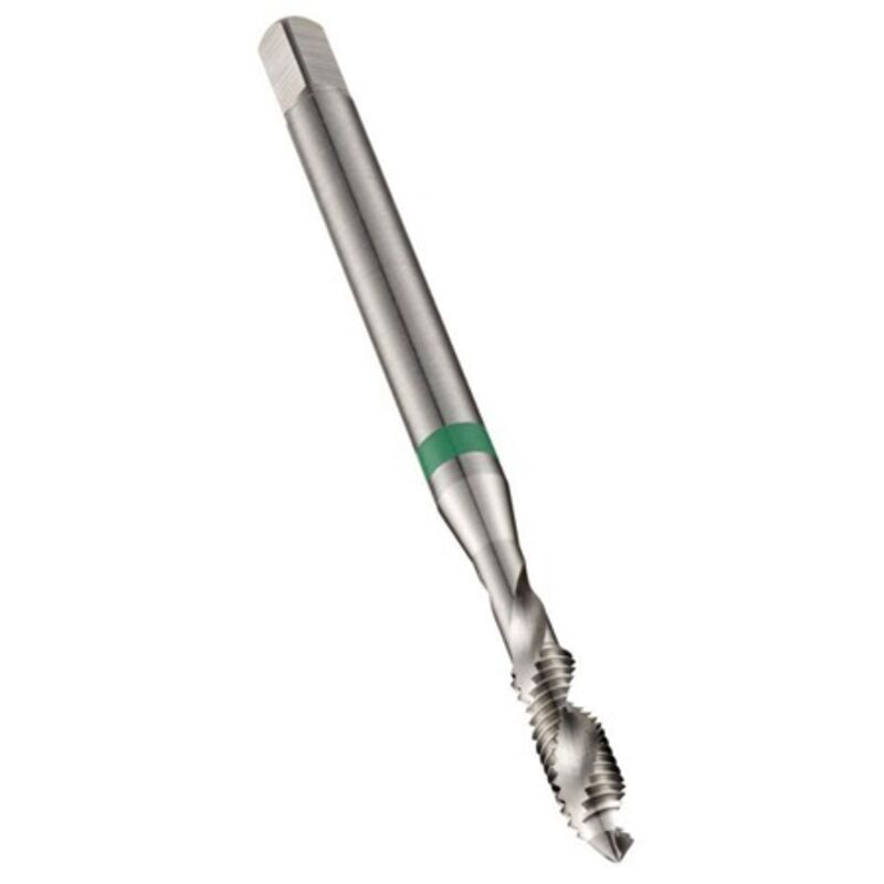 Trapano filettato Dormer M Macchina, scanalature scanalate a destra 35°, Squalo anello verde HSS-E-PM DIN 371 Ulteriori caratteristiche tecniche: · Direzione di taglio: Destra · Forma: C · Versione: Taglia 2 - 3 marce, forma C · Lunghezza del filetto: 13mm · Albero-Ø: 6mm
