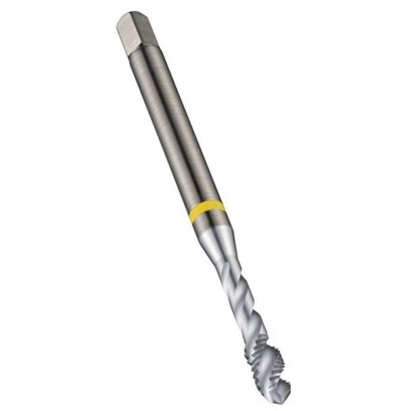 Trapano filettato Dormer M Macchina, scanalature scanalate a destra 40°, Squalo anello giallo HSS-E-PM DIN 371 Ulteriori caratteristiche tecniche: · Direzione di taglio: Destra · Forma: C · Versione: Taglia 2 - 3 marce, forma C · Lunghezza del filetto: 15mm · Albero Ø: 10mm