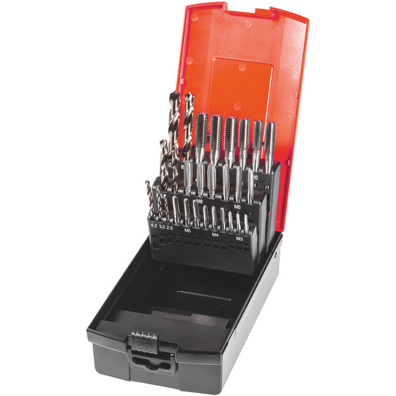 10,2. Contenuto: cad. 1 set di maschi a mano M3 - M12 (3 pezzi) n. art. 130250 e punte per prefori n. art. 114031 Dati tecnici Angolo di filetto Grad 60 Tipo di prodotto Maschi a filettare Norma DIN 352 Per filettatura metrica M3 − M12