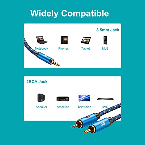 EMK RCA cavo 3.5 mm maschio a RCA maschio Stereo audio adattatore cavo [nylon intrecciato, durevole e flessibile] AUX RCA y cavo compatibile con smartphone, MP3, tablet, altoparlanti - 3M