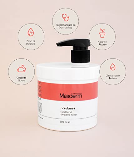 MASDERM | Scrub Viso Donna e Uomo 500ML | Esfoliante Viso Professional | Scrub Viso Pelle Grassa | Scrub Viso Esfoliante | Gel Scrub Quotidiano | Crema Esfoliante Viso | Esfoliante Chimico Viso