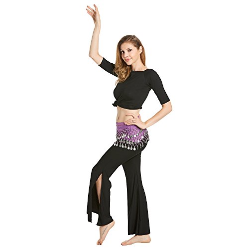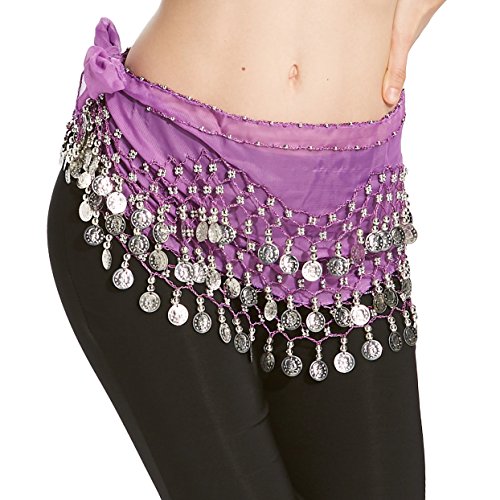 Veni Masee, velo per danza del ventre, con 3 file di monete argentate, Donna, Lila, one-size