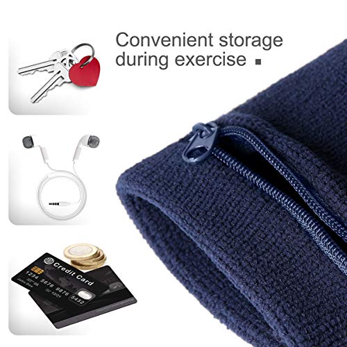 VENI MASEE Sport spessa braccialetto di colore solido con cerniera/portafoglio da polso, 2PCS PACK